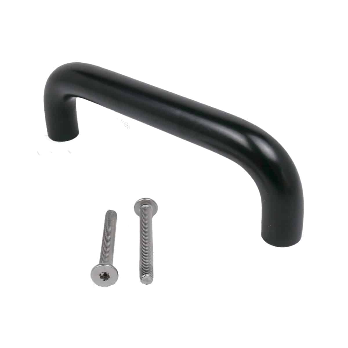 This black powder-coated aluminum door pull from J&E MFG is built for strength, simplicity, and long-term performance in demanding barn environments. With an overall length of 9″ and 8″ on-center mounting holes, it’s sized for a comfortable grip while offering reliable compatibility with a wide range of barn doors and gates. The durable powder-coated finish resists rust and wear, making it ideal for both indoor and outdoor use.