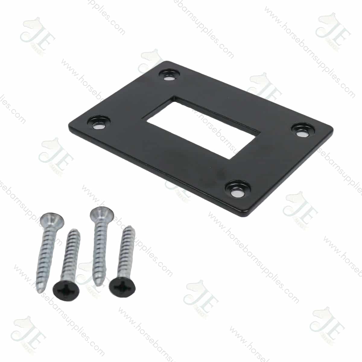 Introducing the Jamb Latch Plate, designed to enhance the security and functionality of your sliding exterior doors. Crafted from powder-coated steel, this latch plate provides a reliable fixture that ensures smooth operation of your door latch. Its precise dimensions allow for easy installation across various opening sizes, increasing both safety and convenience in your barn or stable. The Jamb Latch Plate is an essential addition for anyone looking to upgrade their door hardware, ensuring lasting performance and peace of mind.