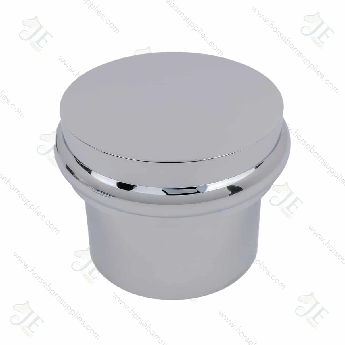 The Polished Chrome Flat Finial Cap with 4″ Base is a luxury decorative accent crafted to create a refined appearance on our European style stall front designs, which use 4″ heavy-wall aluminum tubing. Milled from solid aluminum with a highly polished chrome-plated finish, this is designed to complement both traditional and contemporary stable hardware while withstanding the conditions commonly found in equestrian environments. Its solid construction resists corrosion and requires minimal maintenance, making it well suited for high-use areas such as stables.